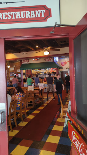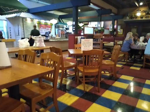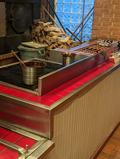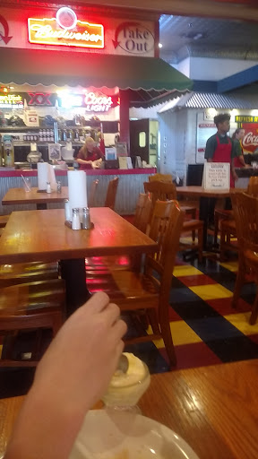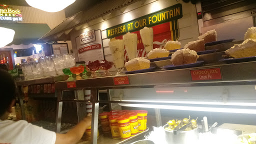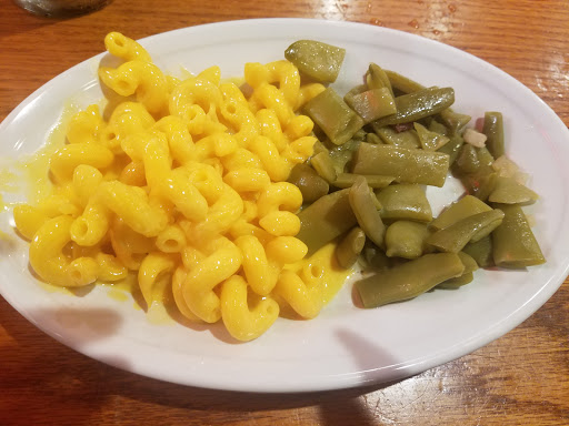 I eat here very often, mostly due to its location. The bad: often the trays are wet or dirty, booths are wet and you have to wipe them down before getting into them because they dont wipe down the bottom of the bus tubs, often our baked potatoes are burnt (today they were all burnt and we just settled for burnt), pricey ($22 for one baker with meat, one without, corn, and beans, nothing to drink), and the BBQ sauce is located past where you get the baked potatoes so you have to move backwards in line or hold up the line. Good: BBQ taste good, I hear green beans are great, I like the macaroni and cheese, fresh bread is amazing even though I often dont eat it, love the BBQ sauce, and free ice cream on Sundays.
