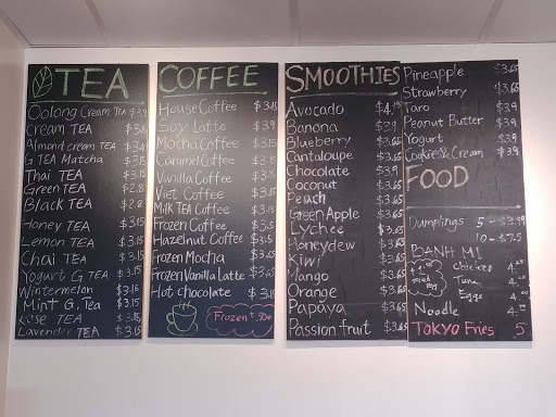TL;DR: Stopped in one evening after spotting the place passing by. 10/10 would tea again. Awesome couple running the place; super friendly and they genuinely seem to love what they are making. After hanging out in the corner for a little while drinking a mango/strawberry smoothie with boba and snacking on a chicken sandwich and dumplings it was readily apparent the owners have a steady flow of regulars walking through the door. On the way over, I had been mulling over what drink I would be enjoying this particular evening and had settled on mango with boba (if they had it... But I mean come on, what teahouse worth its tapioca doesnt have mango) Upon arriving my wife and I looked at the menus, I verified the drink I wanted was available and ordered. When ordering the owner suggested adding strawberry. I almost always take an owners suggestion, so I opted for that. The drink was flavorful, not crazy sweet, had the perfect amount of tapioca at the bottom, and was a great consistency. Definitely look forward to trying the other flavors and tea options. Now for the food. Try the dumplings. I cant recommend them enough. Served in what I can only describe as a chicken bucket, these suckers were awesome. Just the right amount of flavor that you dont even need sauce to enjoy. Though they arent hurt by the by some soy sauce if you decide to add some. As I mentioned, I also tried the chicken sandwich. Also very good. When the sandwich came out I was expecting the usual banh mi faire around town(bread that shreds you gums, butter, and dry meat covered in pickled veggies), but was surprised after the first bite. The baguette used is fresh and not yet petrified, the chicken moist, tender and full of flavor. Then, the surprise; instead of the bottom of the sandwich layered in a buttery coat there is a flavorful slaw that ties the whole thing together. Really good stuff. If youve made it this far, like I said at the beginning, I definitely will be coming back. Hopefully adding myself to the flow of regulars.