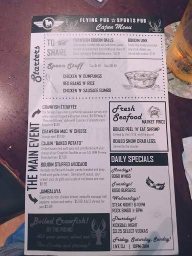 Cough Cough... Smoking indoors? If smoking was allowed indoors I missed the sign on their front door. Every table I looked at had an ash trays. This is so 10 years ago... smoke filled the air, very smelly and uncomfortable getting second hand smoke. Outside seating was available, but of course Houston humidity was not allowing outdoor seating. NO CRAWFISH? Its May and still crawfish season. The menu online doesnt even match the menu in the bar. But food was okay other than the mozzarella sticks(very chewy and not seasoned) wings needed more sauce but the burgers were juicy. Service was great, 3 people were servicing us even though it was hard to identify who works there and who was a customer. Employees should have a name tag or color coded shirt for customers to identify who is an employee. Very casual attire. Clean restrooms and bright lighted bar. Will not return due to indoor smoking.