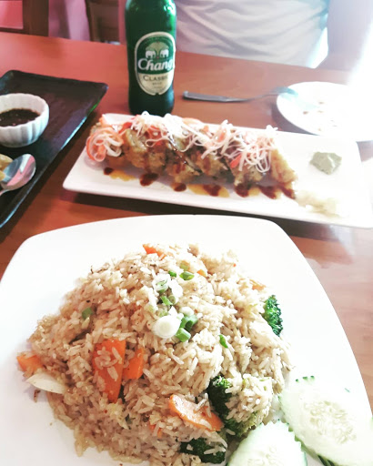 We got Thai crispy egg rolls, pot stickers, a Mt Fuji roll, beef pad thai and chicken pad sa-si-ew. The food was all freshly cooked but the only thing we enjoyed was the egg rolls. Everything else was lacking flavor and both entrees were ordered spicy and you could see a "spicy color" but spicy they were not. We wont be returning.