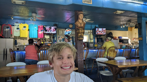 This is the place to go eat after a long day at Surfside Beach and is an authentic experience. Driving there from the beach is about 5 minutes. The service/ownership seemed local, and every person who came through the door, besides a few out of towners like us, seemed to be good long time friends or acquaintances. The restaurant is a bright blue shack with a dark/shaded interior to keep the sun out and lined with gravel in front for parking. When we entered we were hit by a wave of smoking and cheerful welcomes. We sat at the back by the retro arcade games that were occupied with the locals working on their scores, drinking some beer and taking another smoke. Once we got used to the smoke, we quickly browsed the classic american menu and picked the Jetty Deluxe hamburger. I asked for Dos Equis and was given an option to "dress it" with salt and lime. Ive been asked if I want lime in my beer before but its never seemed so unique and delicious before. It was seriously fantastic when the bartender came back with the bottle doused on its side in salt from rim to bottom and with a big lime wedge stuck in. I believe thats the first time Ive scraped off salt of a bottle and took a swig but it was a great ritual. Then came the burger and my god it was glorious, huge, juicy and delicious. I couldnt even focus on the enormous portion of fries on the side because I was eating like I hadnt eaten before and the juices of the meat, bacon, tomatoes and bbq sauce were just dribbling down my hands and face and I believe there was definitely butter on that bun. I could care less about my appearance. Theres plenty of napkins...When we left, it seemed like we ourselves had earned the title of a warm local smile and the sweet reminder of a delicious meal. Until next time!