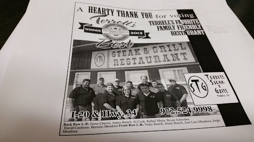 I took my bride to Terrell Steak & Grill for a great steak because, I read the reviews on my Google phone that gave it a 4.5 Star rating. The place is quaint and an old Texas atmosphere which is okay with us if the food is good. The hostess had a great smile and welcomed us. Our server, BRAD, didnt say welcome, didnt ask if this was our first time here or any other cordial greetings. He just took our order. We went to this restaurant because we wanted someplace different on our 14th wedding anniversary. We were so happy and upbeat wanting a great evening. Our evening dinner turned out to be a disaster at this restaurant. My wifes salad and mine had wilted leaves of lettuce and almost ripe tomatoes. My wife had to set aside about 1/3 or her salad. When BRAD pick up her plate, he asked, "Whats the matter with your salad and my wife told him it was brown and he got angry with her and said well, I’m color blind...and basically called her a liar. My jaws got tight but didnt say anything. We ordered the $19.00, 10 oz. Ribeye steaks, medium and they came out medium well because they were cut so thin its hard to get a good grill on that thin of a steak. My wifes steak was very lean and my steak had almost half fat on it. When BRAD came to pick up my plate he saw I had left the fat all together and he said was there something wrong with your steak? I said yes, its really hard to justify paying $19 for half a steak. He said, you know Ribeyes have fat on them. BRAD was so argumentative, again my jaws got tight and I said, just take the plate away. BRAD brought the bill and after he left, I asked the hostess to bring me the manager. Guess who came out, BRAD. I said, youre the manager? Youve got to be kidding me??? BRAD said, yes and went on to say that we had a bad attitude ever since we came in. (I asked the hostess to take a picture of us right after we got our drinks...thats how bad our attitude was...tongue and cheek.) BRAD said, Ill take half the meal off your bill. I said, Ill give you $10 for the steak. BRAD did bring back another bill with half the price of the meals taken off. Needless to say, this is the rudest person I have dealt with in over 30 plus years. Last time I had a rude server 30 plus years ago, I left 2 cents to make a point. Yesterday evening 4-12-17, I left nothing for BRAD. We will NEVER go back to this horrible restaurant. Service "horrible" Food "below average" Atmosphere "Okay if you like old Texas style." Dont go...save yourself $60.