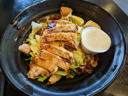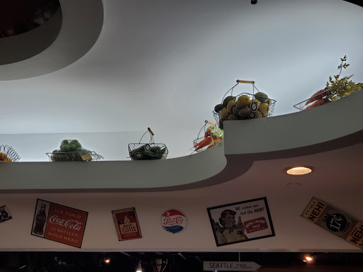 I love the look. Shining wood, and vintage decor, gives a nice nostalgic feeling. From metal planes, black and white photos to Nasa space suit. Such a cook and comfortable vibe. Now the food. Very good selection, beyond just a burger. The are salads, turkey burgers, veggie burgers, vegan selection. Salmon, tuna, tilapia. Sale bar and toppings, lots of choices there, and fries including sweet potato fries. They also have a small section of cookies. Almost forgot.....shakes. Really good food.