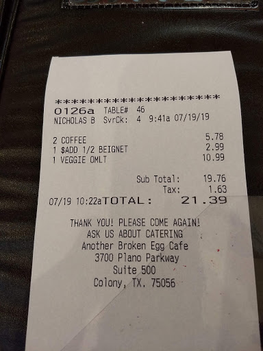 Another Broken Egg - The Colony is 2 thumbs up It didnt disappoint. We ate the Sandestine, Fl location first and this one is just as great. Call ahead to get on the wait list bc the food is awesome and the lines are long but it is large portions and well worth the wait!!! Also "A" rated Resturant