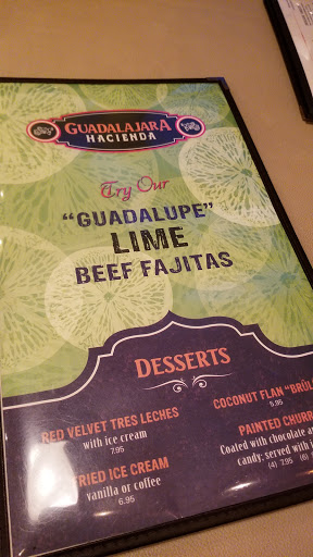 My husband and I absolutely love Guadalajaras ambience, food and service... Christian, the bartender is a wonderful bartender and is known for lifting ones spirit. I have been coming here as a regular for over 4 yrs now and regard the place as a home from home.... As far as the menu goes, I have a couple of favourites depending on my mood... for starters, I like the Nachos with beef fajita which is really good and can be ordered by sizes, 8 or 12., then theres the tortilla soup when it comes to soups. For vegetarians the Hacienda Chopped Salad and the Ensalada Del Rio are really tasty depending on whether you like Salmon or Chicken. As an entree, I love the Marisco which is excellent and my favourite Happy Hour item is the Street Tacos with a side order of rice and beans. These were just my suggestions according to my taste but I believe all their food is really great!Definitely Guadalajaras is a must when venturing out for your next Mexican dinner!!