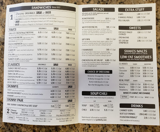 The sandwiches and salads are some of the best youll find anywhere for the price. The lines are often long but move quickly. I used to think the food here wasnt healthy but now they have a calorie count on the menu so I can enjoy the sandwiches and not feel too guilty!