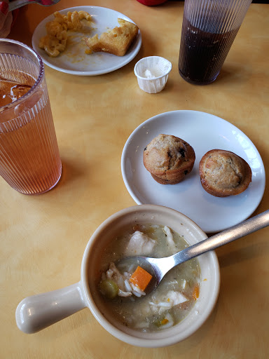 Delicious food, friendly staff, and family friendly. You start with the salad bar which has prepared salads as well as full salad bar with all the fixings. After paying and finding a table (or being seated during busy times) you can now hit up the soup bar which has 8 different soups, the pasta bar, or grab a baked potato. They have wonderful cheese breads and for dessert you have muffins, icecream, fresh fruit and a sugar free chocolate mousse. Well definitely be back!