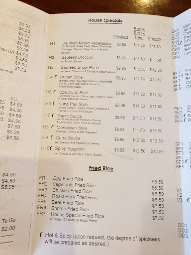 I love it.. very hot food the portions are great. I like it because it is NOT a buffet resturant.. its cooked when you order it.. the chicken Lo mein superb.. fan fried dumplings are lights out.. the all white meat chicken general tsos.. its killer good..I like to eat in, its a small place 9 tables inside.. so very good..