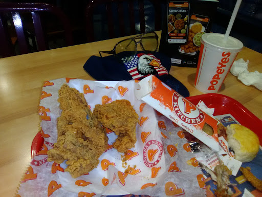 Food taste like any other Popeyes but during my visit tonight they were out of red beans & rice and no barbecue sauce for my chicken strips! Most of the tables in the dining area are dirty and the workers are standing around chatting about nothing.