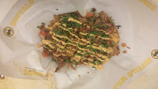 I am torn between 5 stars and 1. The food was EXCELLENT. The service was AWFUL. I suggest Amber, behind the bar, puts her phone down and attends to the customers. I sat there for three minutes... AT THE BAR before she came and got my drink order. There was a total of 7 people in the entire bar area... 5 of whom had obviously been there a while. She stood three feet from us jabbering away with 3 of those patrons while we stopped a waiter and asked him to take our order. When our food came out, she left my boyfriends WINGS off of his sampler platter. Really? Buffalo Wild Wings gonna forget the Wings? I must mention the fact that she was VERY attentive to the message notifications on her phone. When we were ready to pay, we, once again had to stop another employee to assist us. She was THREE FEET AWAY... Phone in hand. Our tab was 49 and some change. I worked in the food industry for many years... I rarely tip less than 25%... Hardly ever less than 15... This gal got $4.00... I dont feel bad one bit. But the grub was to for. Put down your phone Amber.