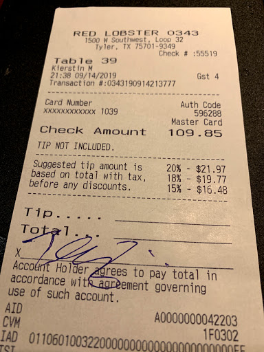 It wasnt a good experience, there was several things they didnt have that is on their menu, salad, vegetables, the rolls werent as good as they usually are. The waitress was very nice, after she had to tell us for the 3rd time that they didnt have what we ordered , the fourth time the head waitress came and told us we needed to order something else. So there was 4 items that we ordered, normal items that we had to order something else. Then when we got our check the items we didnt get was charged as extras. So we wont go back to the red lobster in tyler on loop