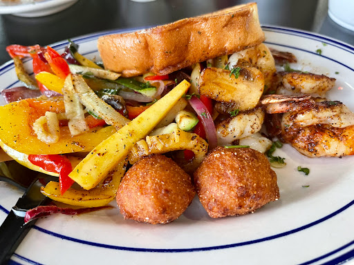 I can only speak to the fish tacos at The Catch, because I cant bring myself to get anything else when I go there; they are that good. Dont waste your calories on the fried fish tacos, because the grilled are amazing. Comes with a huge portion of fries, and the best hush puppies I have ever eaten. I dont really like hush puppies, but at The Catch they do something special. Dipped in the ranch sauce that comes with the tacos...they are fantastic. Great atmosphere, you can eat outside, or take to go. Yummm!