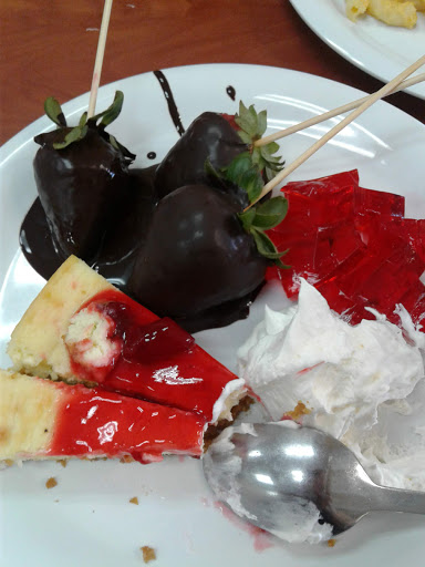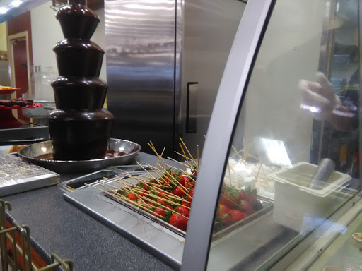 The food is good, that is of course if you can get the food. Chocolate fountain was out of stuff to dip into the fountain. The girl that was supposed to take care of that station was too busy flirting with the guy who was the cashier. The time before when we came the guy who was cooking the omelets was rude and ignored me so I never got to get an omelet. Also, I watched the same girl who was supposed to run the chocolate fountain station help get trash from the bathroom, cough into her hand, and then touch various items on the buffet. She picked at items on the buffet a couple of times and then made herself a bowl here and a bowl there of stuff to eat. The whole time I was there with my family she flirted, ate, or stood around. Never saw her work but she surly helped spread germs everywhere! Im sorry, but if youre an employee and you go into the restroom, hands need to be washed before you touch other things. Period!