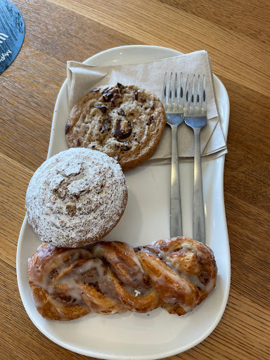 Worst customer service but tasty food. The order clerk was busy for over 2 minutes w/ pastries. Finally had to ask kitchen where clerk was- she finally came, there were 3 customers waiting. We ordered, sat at table , when my daughter noticed that her tuna sandwich was listed as chicken/ almond. I went to register- clerk was telling story to customers about not serving Coke products that the customer said" thats effing stupid". As it was my turn to correct the order, I explained that while wearing the uniform, she should not use that language around customers - she then told me to "mind my own business". After I said Wow, I then proceeded to attempt to correct my daughters order- she was not helpful. Did talk to manager, hopefully, she will get a conversation with a written warning- AT Least!!!