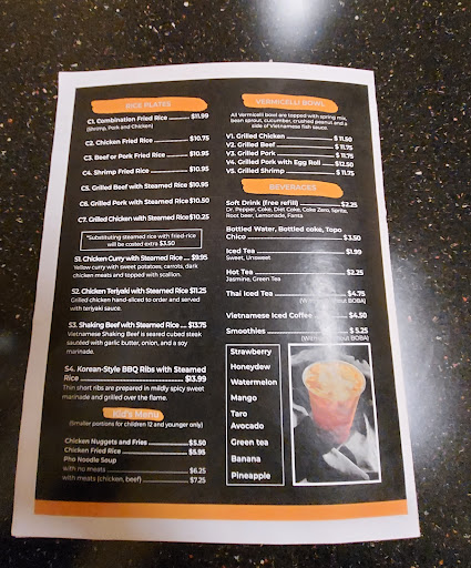 I have gave this place three chances and it let me down all three times. They are under staffed. My pho was delicious but my husbands teriyaki chicken was terrible. The chicken was very dry and cold when it came out. They do not offer kids menu or kid size drinks. This makes it hard when you have a children with you. We also heard the table in front and behind us complaining. I asked for a lemon for my water and I was told they do not have any lemon or lime, but of course I got a lime with my pho. Me and my family will never eat there again.