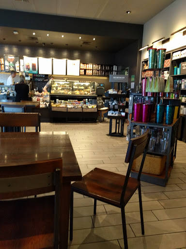 Comfortable atmosphere; quite cozy. Soothing decor; exceptionally clean. Staff was very helpful with choosing a beverage. Very busy location. Was there about an hour. Drive thru busy the entire time. Inside was standing room only. All tables and chairs occupied with patrons working, and conversing. I had an iced mocha. Best coffee beverage I have had at a Starbucks or anywhere else!!
