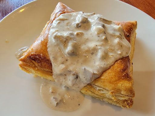The staff was great and the food was amazing! Tomato soup was great! I had the chicken cordon Bleu pasta and it was pretty good (Im a pasta lover so thats why its just "pretty good," but my gf liked it a lot.) My gf got the pick 3 salad. You pick 3 different types of salad (with cup of soupe was also a choice) and it was 9 for that. Great pastries! We are definitely coming back!