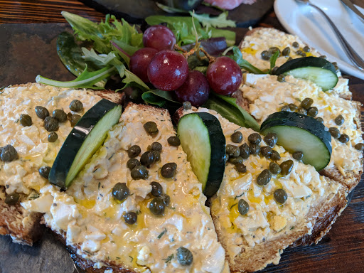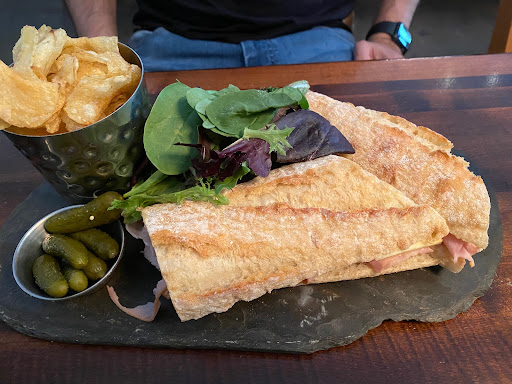 Their ham and cheese sandwich was pretty bad, but their cheese board was OK. Coffee was good too. Overall seems overpriced and pretty boring.