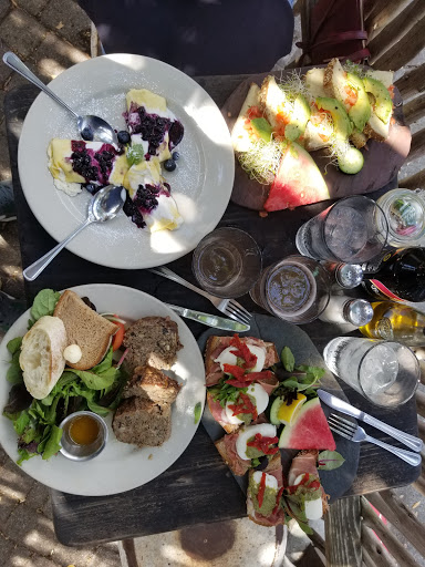 This place seems great before you even go in because you see the patio, then you walk in and can look at the special board or whatever and already can see why this place is set apart from the rest. The patio is nice and shady and has mist fans and then the food comes and blows your mind. Oh and I think I waited for my food less than 3 minutes. But only ordered a sandwich with avocado and hummus. Watermelon on the side, WHAT?! poached pair for dessert?? I THINK YES.