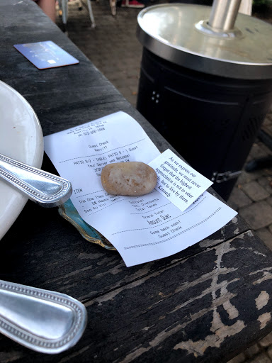 Excellent food, easy pace, great place to visit with friends and family and lose track of time. Waitstaff timing a little off, but mostly pleasant.