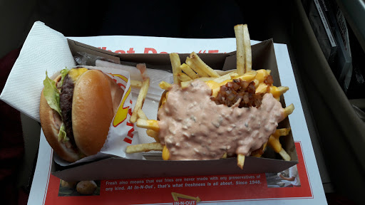 As the food is identical to the location in Orem, here is that review: Its easy for people to complain about In-N-Out. I havent found anyone who is ambivalent toward it - you either love it or hate it. I enjoy the burgers. The fries, less so. Theyre not bad, since they make them fresh from potatoes (rather than pulling them from a frozen bag). However, unlike Orem, Ive never had slow service at this location, so it earns 5/5.