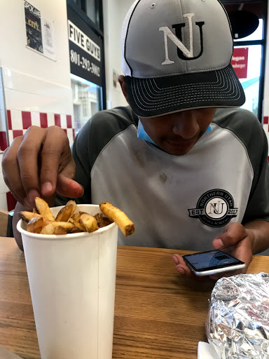 I love the jalapenos they put on their burgers here. I have to stop in here every time I visit my friend. Its that good. I have a joke about this place, but since its about five guys, I shouldnt say it. xD