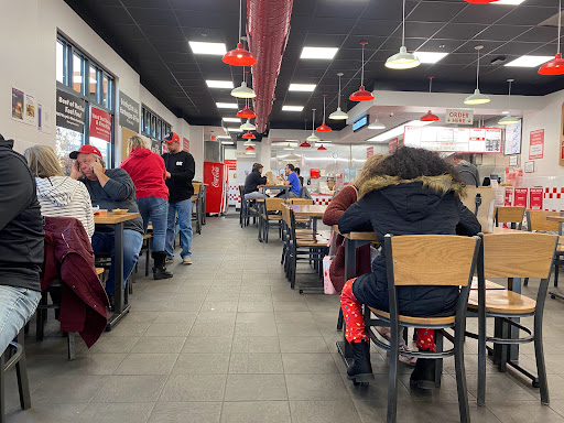 The burger is about as good as you get for a fast food place. It is awesome that you get whatever toppings you want for the same price. I love the cabin fries with the vinegar. It would be 5 stars if it just wasnt so expensive. A cheeseburger is nearly $7! Then you have to buy fries as well for another $5 or so, depending on the size. As for this location, they usually move through pretty quickly. Not too bad of a wait.