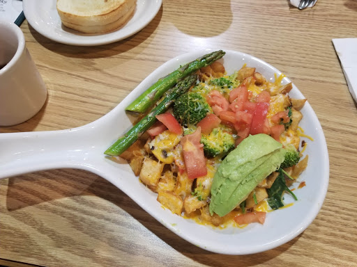 GREAT service and very good breakfast menu. Food was good and serving size was perfect. Lots of sitting room, pleasant atmosphere.