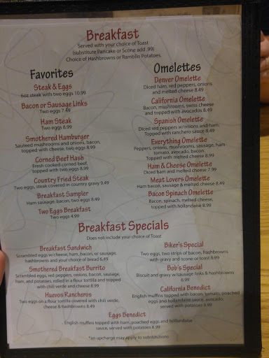 This place is one of our favs. Its the lil hole in the wall, good prices, good service, and totally chill. I think a lot of people steer clear because its located over a bar and so many in the area are "avoiding the appearance of evil" and so afraid of being "judged". GET OVER IT and come enjoy this lil West Bountiful GEM! Let me tell ya about our experience today. Our waiter was out right away with water and shortly followed with a bowl of cutie Oranges. He had overheard my son ranting about wanting fruit. No charge, just something to keep my son busy while we waited. The food is always great. I love love the California omelette. On a side note, as a student and a business owner I have found this place to be a great place to park my butt for several hours and tap into the wifi. I get a lot done while the coffee keeps a Flowin. Thanks Romblin Roads for feeding us well for the last lil while. Well be back!
