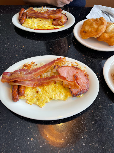 Food was ok. The chicken fried steak was hard, scones were good but not great, and our service was horrible. Our waitress Felicia seemed distracted, rushed and like she just didnt care. We got our food the same time as the table behind us which was seated 4 tables after us and she never checked back with us to see if we needed anything or how the food was. Not what I expected.