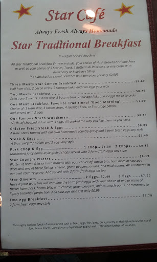 Star Cafe is a great little dive that we take our family to for breakfast. I havent ever tried them for anything else, but were consistently satisfied with the service, food, and definitely the low prices.