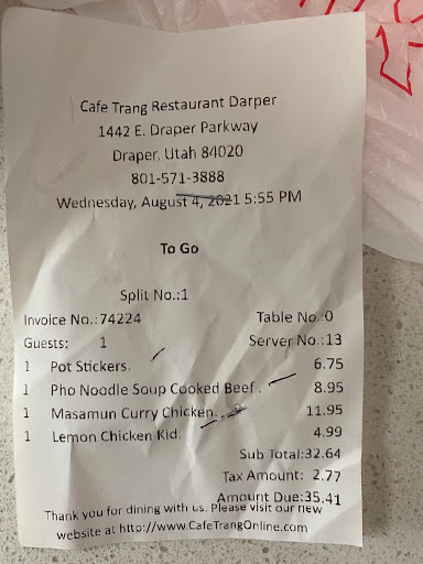 For over 20 years now my wife and I have been dining at the various Cafe Trang locations in SLC. Weve tried new places and can never find anyone to compete. Customer service is always wonderful and I their food never disappoints. I always like to suggest the Fresh Spring Rolls and the Saigon Noodle Salad and make sure to order a little side of Siriachi sauce for the side. This is a long time favorite place of ours.