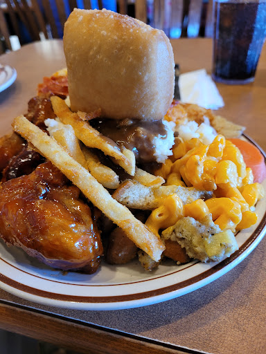 On the positive side we love the selection the scones are always wonderful, the salad bar was good and of course you get drinks and desserts. However on the Poor Side some of the dishes lacked taste, the baked chicken was dry, the turkey Kettle Stew was over overdone and carrots were mushy and the roast beef didnt have any flavor.