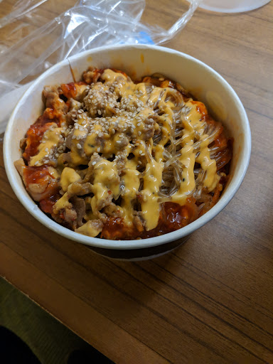 Stumbled in here about half-past-six shots of vodka in the PM. I forget the date. It was cold and snowing and I wanted a break from the blizzard. I gave them a mission: serve me the spiciest thing they were allowed to give me... Heres how they did: I say Doochi Bop, they say how hot. I immediately say ten, they all shout FIFTEEN in unison. After they carpet bomb the cup with sauce they give me a raw habanero for an appetizer. Nom. I shed my winter outerwear and sit down to begin my feast. They were quite concerned with my safety at first, which was appreciated but unneeded. I chowed down on that heaping bowl of rice and spice for several minutes before one of the cooks comes over with fresh complimentary pot stickers. Danke, Kamerad! After I finish they kindly kept an eye on my snow gear while I went for a roll in the snow to cool off because man was I sweating after that inferno. Mission accomplished.