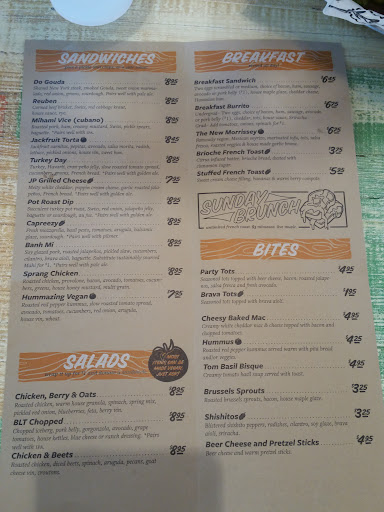 The sandwiches are worth your time, but beware that each one has an extra superfluous ingredient added by a hipster; for example, the pot roast sandwich would have been perfect if theyd left off the jalapeno jelly - it added no real flavor or heat and ruined the sandwich by making everything taste sugary. Skip the tots - they were all cold, mushy, and flavorless. The pretzels and beer cheese are very good. Service was a bit on the slow side. Ill be back for a sandwich...minus any unnecessary ingredients.
