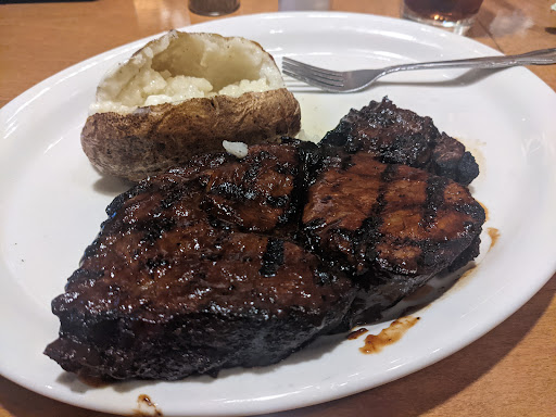 Ordered the $21 ribeye. Has to be the worst steak I have ever eaten at a restaurant. IHOP has a better breakfast steak than what I was served. A good cook would season and cook a steak that the marbling would give it such flavoring characters that steak sauce is not needed. 20+ day aged steaks my ass. The steak I received had non existing marbling in it, dry and tasted pan fried with no oil. Just terrible. First time I actually asked for steak sauce to give this roadkill some flavoring.