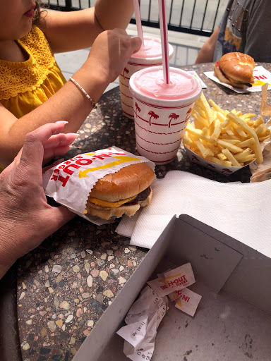 I was so happy to find an In-N-Out when we came to visit my grandparents! This location was clean and comfortable, and the staff was super nice. They even gave my 1 yr old some dino stickers, and he LOVES dinosaurs! Had my hamburger, lemonade and animal fries - making this a VERY successful trip!