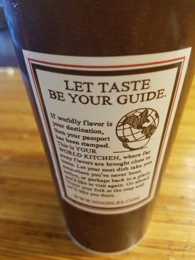 Low quality. This store always cuts corners and I know exactly what they are doing because I worked in the kitchen at a different noodles location for over a year. Noodle/grill dishes come up watered down because its SOOO hard to let the pasta baskets drain for just 30 seconds or at least give it a good shake. Pasta is so far past AL Dente it falls apart in your mouth. I know the whole cooking process here and how its been completely simplified to where anyone can do it. Trust me people, this staff just doesnt try/care. Highly recommend driving to any other location.