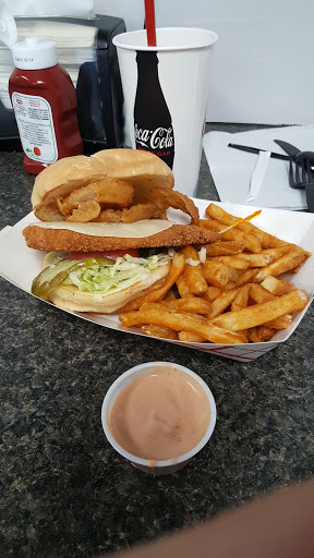 Greasy Burger and sandwich joint. Food is great and the prices are very low comparibly. Its a good deal for a quick greasy bite. The wait is moderate to low. Generally they are very fast, however if you show up in a rush youre gonna wait a little. The interior is small and has a cramped feeling but it does the job. Over all it is a great place to grab a cheap, delicious bite.