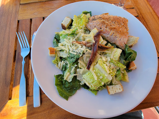 This cafe at the top of a hill is pretty laid back. You order at the register, they are pretty saucy about that, and then deliver your meal to your table. If you want to pick up some diapers or dog food, they have that too. It also tries to be a high-end convenience store, so you can grab a snack bag of pistachios for $6. My club sandwich was burned and the margherita pizza was bland. The sweet potato fries were fine. The Caesar salad was symbolic - meaning there were about 12 mini leaves of lettuce on the plate with another 7 grape tomatoes halved. The service for ice cream was nonexistent. I literally waited for 5 minutes for no one to notice or help me. I would not return and I would not recommend it EXCEPT for the wonderful view and lovely property it shares with some resort housing. In front of the restaurant was a vendor selling churros files with Nutella, dulce de leche or sweet cream sauce. They were fresh and delicious. Evidently the owner of the restaurant is friends with the Churro man and is helping him out. It was the best food at the venue.