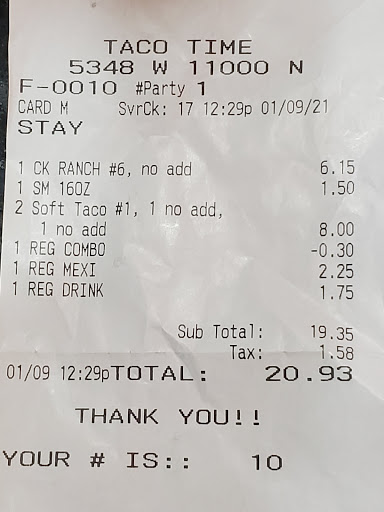 This is one of the good Taco Time locations. They rarely get orders wrong and the food is always quite good.