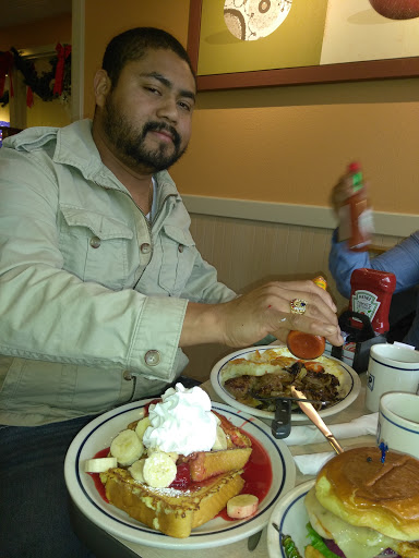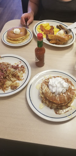 Our server was Gideon. Hes really great and friendly and quick! He did everything right. I love this location for its cleanliness and yumminess! I forgot how big the servings are! And kids eat free during certain times! Genius. We had the mint chocolate hot chocolate, chocolate milk, chicken fajita omlette, red potato wedges, grain&nut pancakes, Colorado omelette, sour dough toast, and NY strawberry cheesecake pancakes. Everything was delicious and amazing and made perfectly. Props to the chef there! We had to bring home some leftovers in a box. This is our go to ihop for our family. :)
