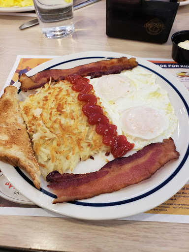 If the staff cared more about their customers I could upgrade them from completely uncaring to simply inept. Who the hell puts wheat flour in their egg dishes? IHOP does. My boss loves to meet at IHOP. I cant have anything with gluten. Omelettes are naturally gluten free except at IHOP. THE big problem is that they dont tell you. Took getting sick 3x to figure it out and then threaten the asst manager to confirm the chains wheat fetish. I have never seen an order delivered in under 25 minutes and then thrown on the table by teenagers who acted like they were doing community service and not serving willingly. Avoid like the plague. The only positive is that the ice water is good.