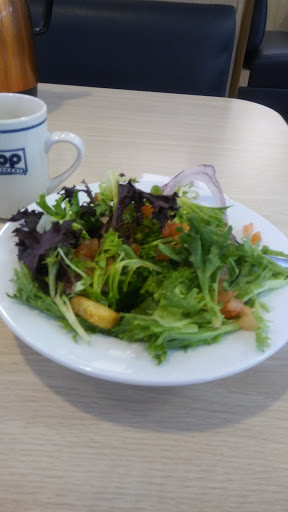 Probably the time of day but still incredibly mediocre. Server took forever to get to us to take a drink order and even longer for the food. A burger and a breakfast plate was ordered. Breakfast was cold and they missed giving me the pancakes that was supposed to be with my order. The food took so long the server forgot we hadnt got our food yet and asked if she could get us anything else before then check. Bacon didnt even seem cooked in anyway which was surprising they couldnt give it any attention given that I ordered an extra side. All in all I I havent died from the experience yet so it still served a purpose I guess.