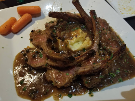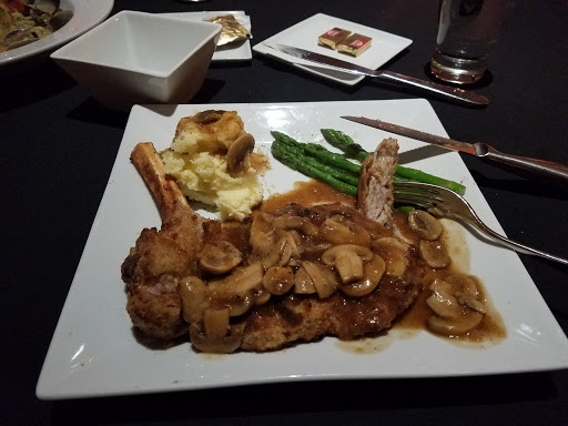 This place is underrated. Well thought out...Fantastic ambiance and decor. Cozy fireplace, 5 star service and the music was the perfect volume. I ordered dinner salad and the filet mignon...delicious and cooked to perfection...did I mention it was tender? The cherry tomatoes in the salad were flavorful....balsamic was very good and applied in the proper amount. Serve with mashed potatoes, steamed asparagus and carrots. The asparagus was correctly served. Our servers were there when you needed them but took care to not make themselves too much a part of the experience...Very nice. Oh and the restrooms were clean! We will be back for sure!