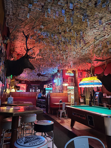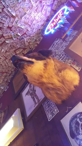 Worth coming out of your way to visit. Their Star Burger is delicious. They dont do French fries so they serve it with chips. The ambiance includes a ceiling covered in dollar bills, walls decorated with real and imagined heads including a huge bull moose and an enormous dog. Those two are real. The dog is famous. Music is provided by an old jute box.