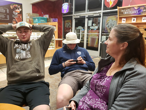 Cold stone is the best ice cream shop around! Literally, they scoop your ice cream and smoosh in your "mix-in" against a large cold slab of stone! Its delicious! My recommendation is cake batter ice cream with cookie dough mix-in! This particular shop wasnt too busy and seemed clean. I love that Rocky Mountain Chocolate Factory has some products in there too! Their caramel apples are the standard against which all others should be rated! Somehow the caramel doesnt slip off the apple! Even after a day outside the fridge!
