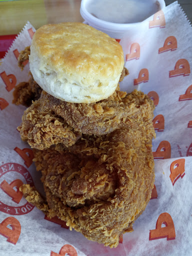 This by far is my favorite fast food chicken. The service here is outstanding. I usually do the drive thru but my wife and I went inside the other day and we were blown away by the customer service (a rarity in fast food). There are some reviews on here complaining about the honey sauce and telling people to go to KFC because its cheaper. First off, Im not coming to Popeyes for honey or the illusion of honey. If youre that stuck on whether its honey or honey sauce, go find yourself a farmers market and get some real honey. They dont promise real honey, or are they even know for their honey, so why this is an issue is beyond me. Secondly, the deals you can get here are amazing, you just have to watch the specials. The $5 box with 2 sides, a biscuit, and three tenders is a great deal, plus Ive never ordered here and had exactly 3 tenders in my box, usually they throw in extra chicken. Tonight we got a $4 box that had plenty of chicken, a biscuit, and a side. Where can you get a deal like that? Finally, come hungry. This place will load up your tray with food. Its great chicken, make sure you add the Cajun seasoning packet to it and make it even better.