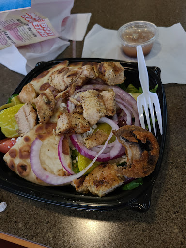 Greek styled fast food restaurant. It isnt bad but isnt great at the same time. The food is served on cafeteria looking trays that look like they reused it without cleaning it very well. The workers look bored and a few of them are just standing around doing nothing, and they arent really excited to see you.