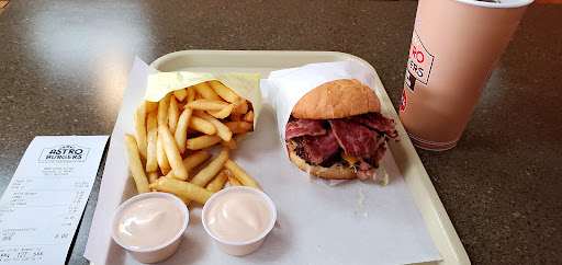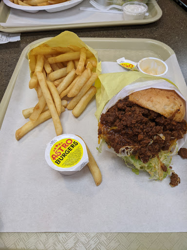 Typical hamburger joint. Reasonable prices for the basics like hamburgers. The meat on the steak sandwich is cut really thin and varies hugely in quality. They do keep the place up so its clean and nice inside, and theres always a manager there who takes care of business. They dont use butter on their bread for patty melts and grilled ham and cheese sandwiches. The use some nasty tasting oil. Too bad. Just take anything cooked with that oil off the menu. Like the oil, a few other things seemed to be nickled and dimed a bit too much. Other things like the lamb are done well, are fresh and taste good. However, baklava isnt the only desert in the world but the Astro owners think it is. Overall an okay place with fair pricing.